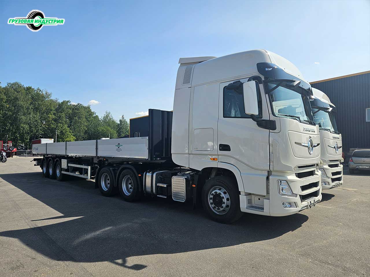 Отгрузка 2-х сцепок тягачи Dongfeng GX 4x2 и 2-х полуприцепов бортовая платформа Тонар В3-13К в г. Москва.