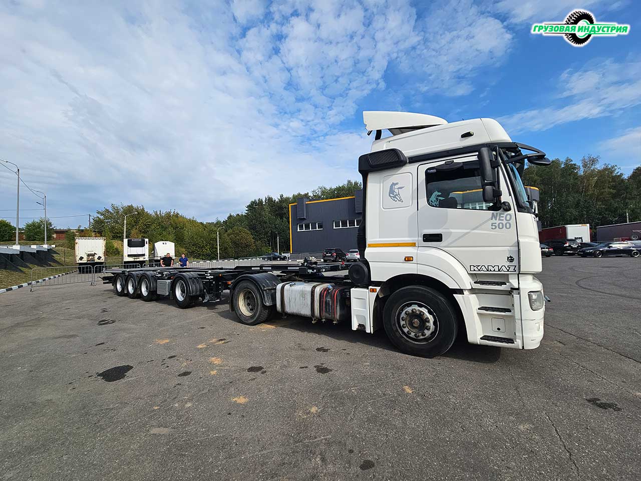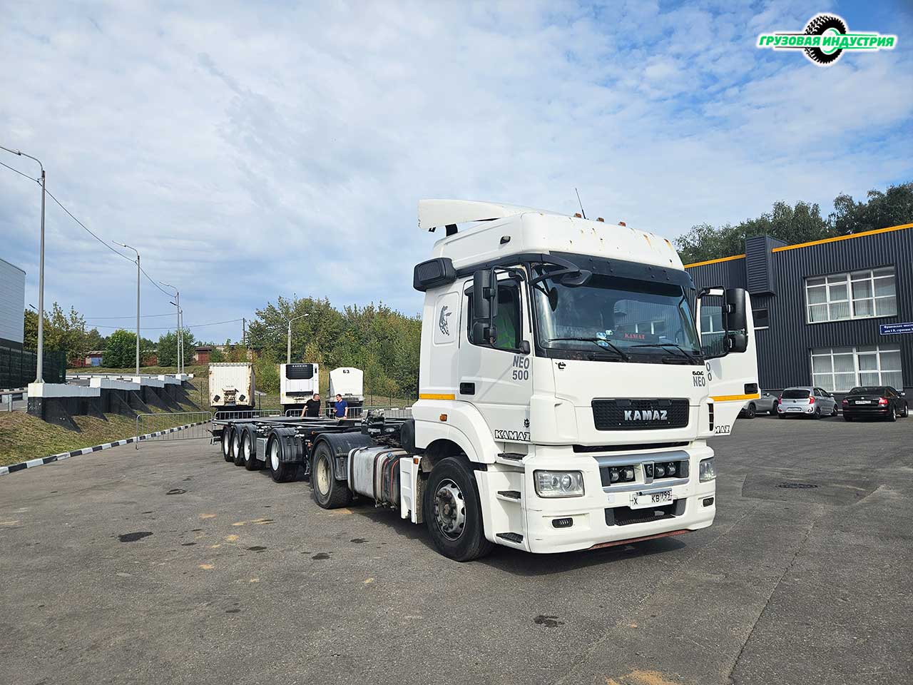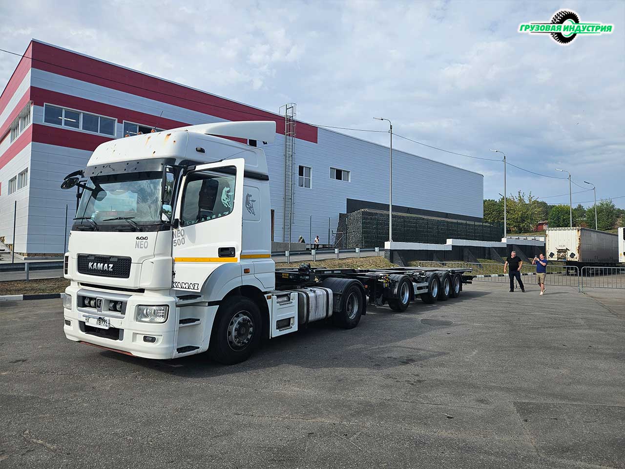 Отгрузка сцепки тягач Камаз Нео 4x2 и полуприцепа контейнеровоза Тонар К4-U в г. Москва.